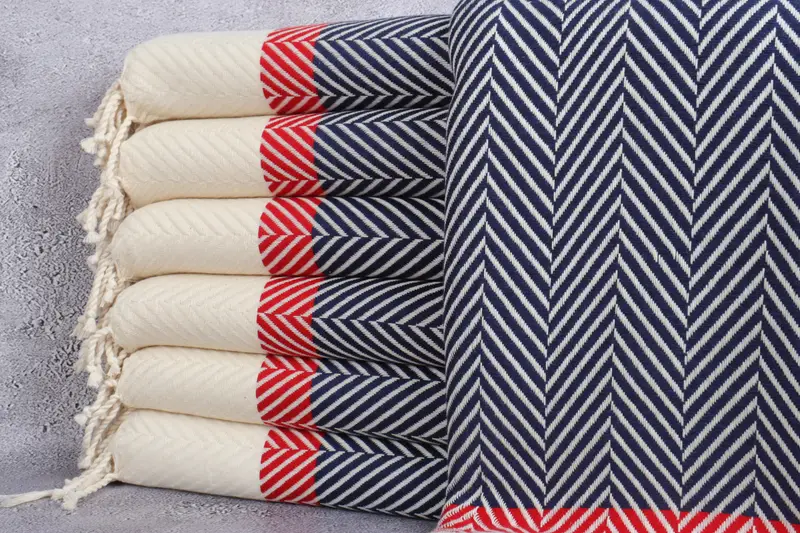 Organik Pamuk Havlu Kırmızı ve Lacivert Çizgili, 38x83 İnç