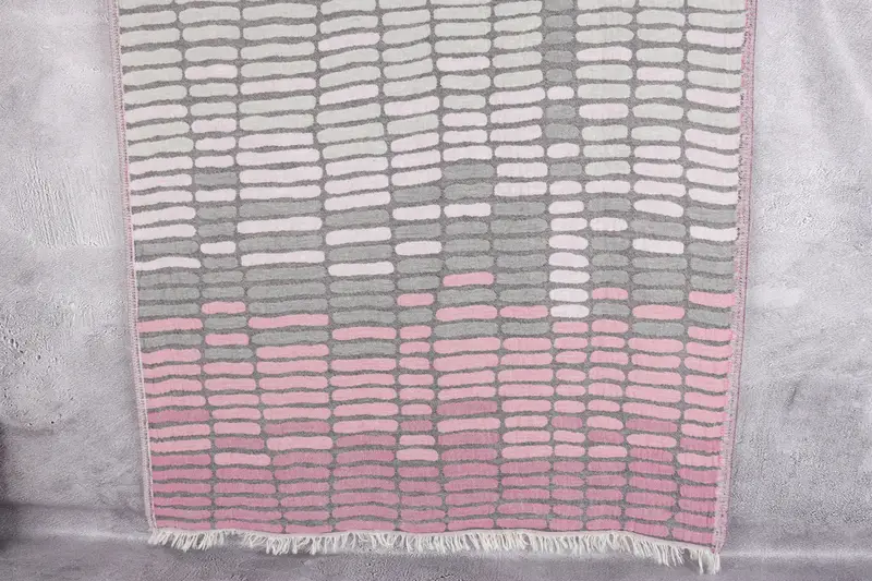 Asimetrik Tasarım Kişiye Özel Peştemal, Bejli Fuşya, 40x69 İnç