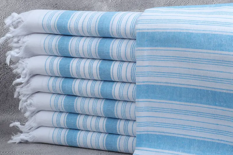 Türk Plaj Havlusu Turkuaz Çizgili, 32x67 İnç, Kişiye Özel