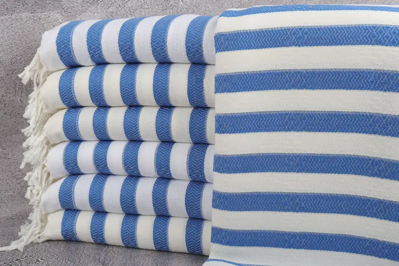 Kişiye Özel Türk Havlusu Çizgili Peştemal Saks Mavi, 36x71 İnç