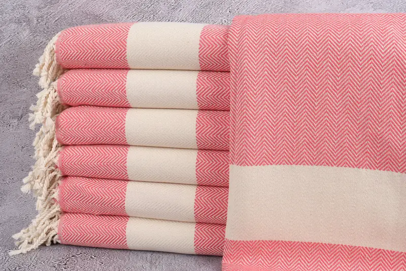 Kişiye Özel Organik Pamuk Havlu Vermilyon Şerit, 40x71 İnç