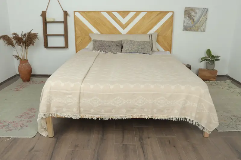 Türk Battaniyesi Organik Bej Geometrik, 60x71 İnç
