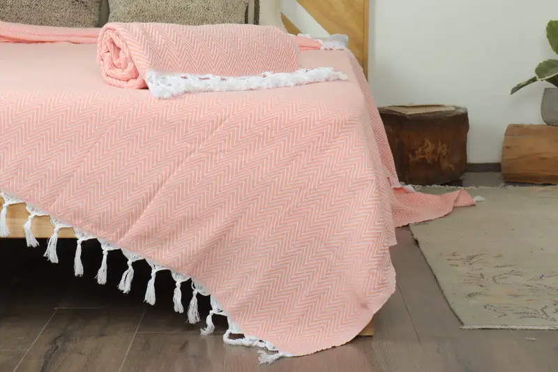 El Dokuma Battaniye Mercan Chevron Koltuk Bej, 71x87 İnç