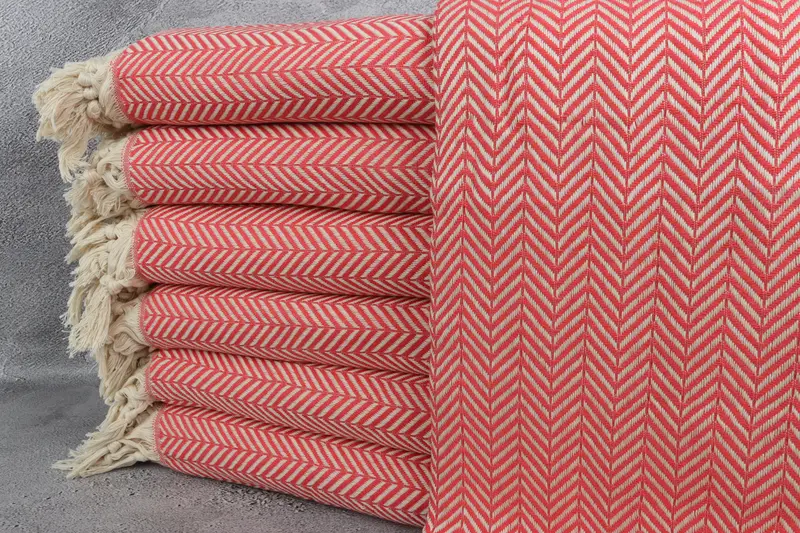 Chevron Özel Düğün Hediyesi Atın, Vermilyon Pamuk Atın, 75x91 İnç