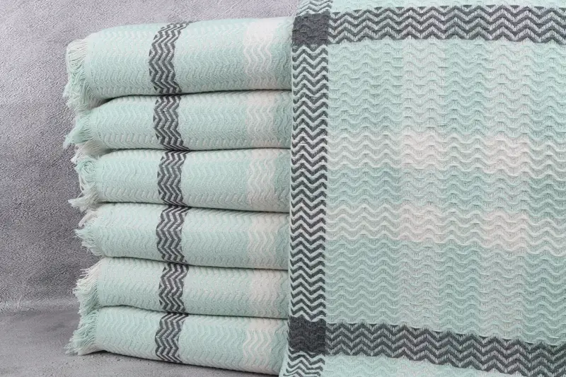 Türk Battaniyesi Nane Pamuk Chevron Desen, 79x89 İnç