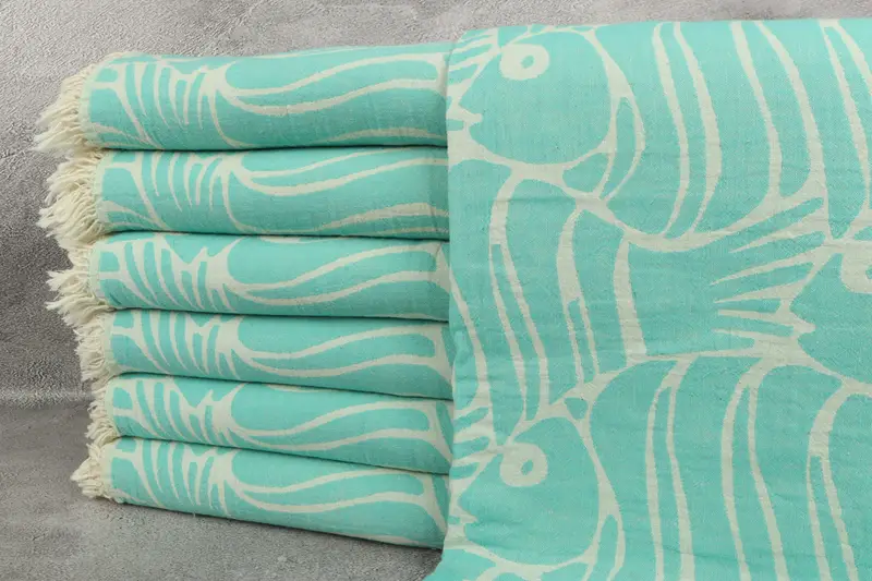 Balık Tasarım Koltuk Örtüsü, 60x71 Benetton Yeşil Pamuk Örtü, Çiçekli