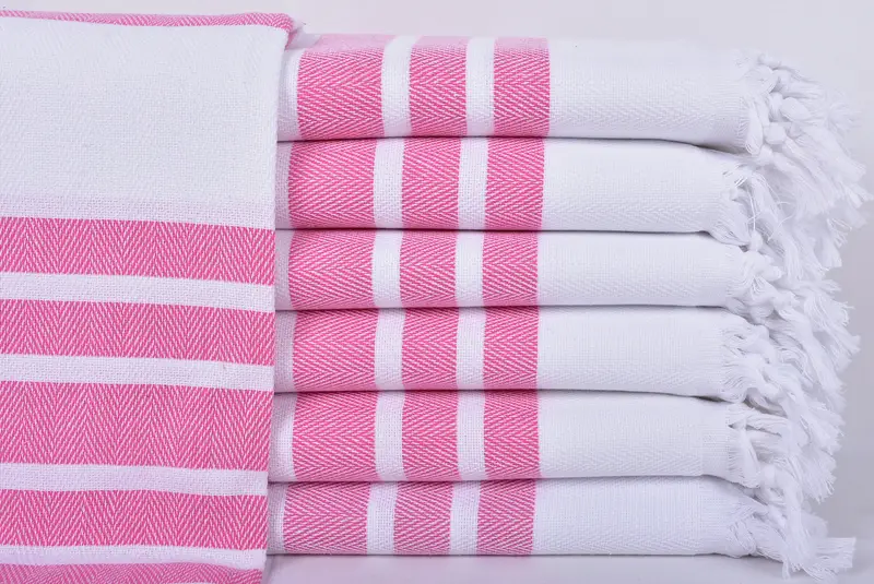 Türk pamuğundan havlular, üstün emicilik ve çabuk kuruma özellikleriyle karakterize edilir ve çeşitli kullanımlar için optimum performans sağlar. Geleneksel el tezgahı dokumasından elde edilen bu havlular 40x71 inç veya 100x180 cm ölçülerinde olup 5 cm daha küçük veya daha büyük toleranslıdır. Her havlu yaklaşık 380 gram ağırlığında olup birinci sınıf Türk pamuğundan üretilmiştir.