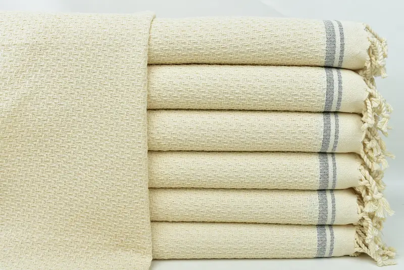 Yumuşaklığı ve çabuk kuruyan özellikleriyle tanınan Türk pamuğu, üstün emicilik ve dayanıklılık sağlar. Geleneksel el tezgahı teknikleriyle karakterize edilen havlular, 18x38 inç veya 45x95 cm ölçülerinde ve yaklaşık 120 gram ağırlığındadır. El dokuma toleranslarından dolayı ölçülerde 2,5 cm'ye kadar farklılık olabilir.