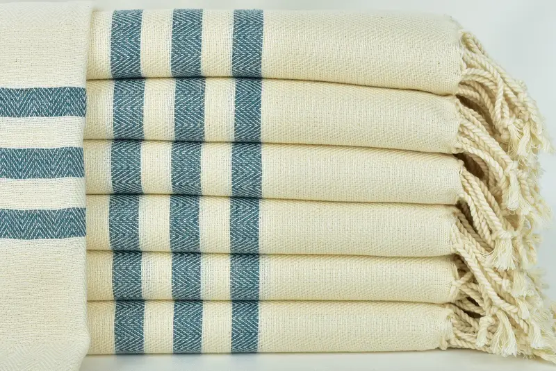 Birinci sınıf Türk pamuğu, olağanüstü emicilik ve hızlı kuruma özellikleri sağlayarak son derece verimli ve kullanışlı havlular sağlar. İzin verilen 1-2,5 cm toleransla 40x71 inç (100x180 cm) ölçülerindeki bu havluların ağırlığı yaklaşık 250 gramdır. Geleneksel el dokuma teknikleri kullanılarak hazırlanmış olup, benzersiz özellikler sağlayan hafif farklılıklar sergilerler.