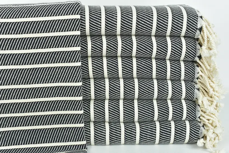 Türk havluları, üstün emicilik ve hızlı kuruma sağlayan birinci sınıf Türk pamuğu kullanımıyla öne çıkıyor. 40x71 inç (100x180 cm) boyutuyla karakterize edilen her bir havlu, 2,5 cm'ye kadar farklılık gösterebilir ve yaklaşık 360 gram ağırlığındadır. El dokuma işlemi hafif boyutsal farklılıklara neden olur.