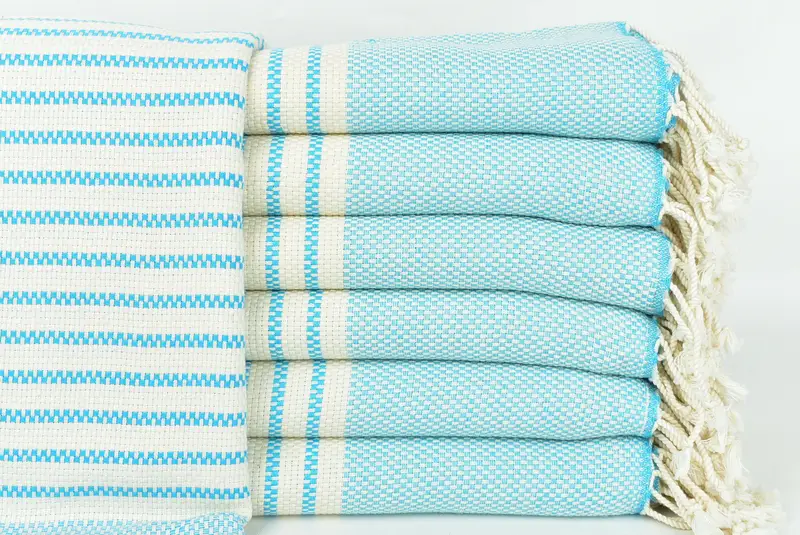 Birinci sınıf Türk pamuğu, dünya çapındaki itibarıyla karakterize edilen olağanüstü emicilik ve hızlı kuruma özellikleri sağlar. Türk havluları 40x75 inç veya 100x190 cm ölçülerinde, 1-2,5 cm toleransla, yaklaşık 400 gram ağırlığındadır. Kişiselleştirme seçenekleri, yıkama sonrası tutarlı boyut sağlayan önceden küçültülmüş durumun yanı sıra isimlerin veya tarihlerin işlenmesini içerir.