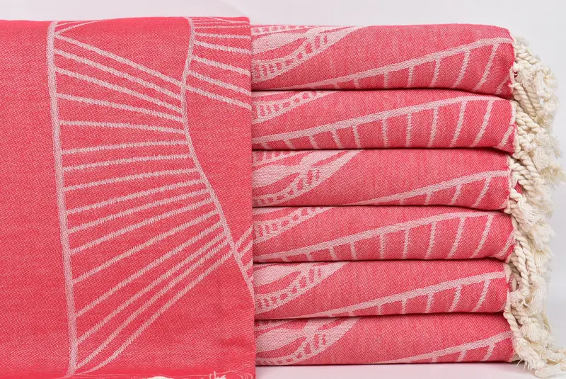 Kişiye Özel Türk Havlusu Organik Kırmızı Desenli, 40x71 İnç