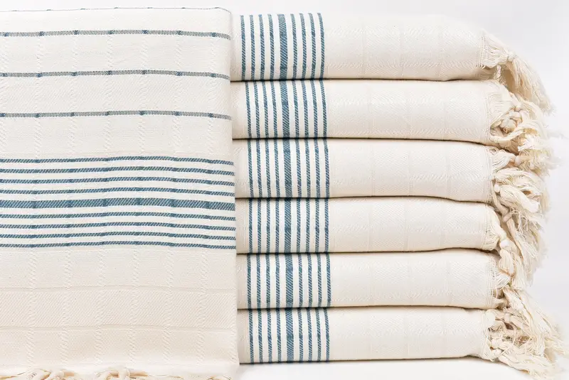 Türk Hamam Havlusu Petrol Mavisi Çizgili, 40x71 İnç