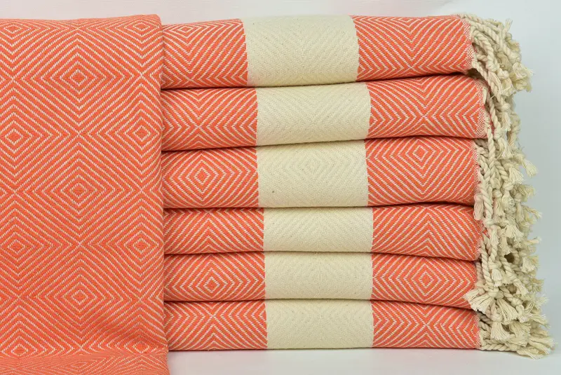 Kişiye Özel Türk Plaj Havlusu Orange Diamond, 40x79 İnç
