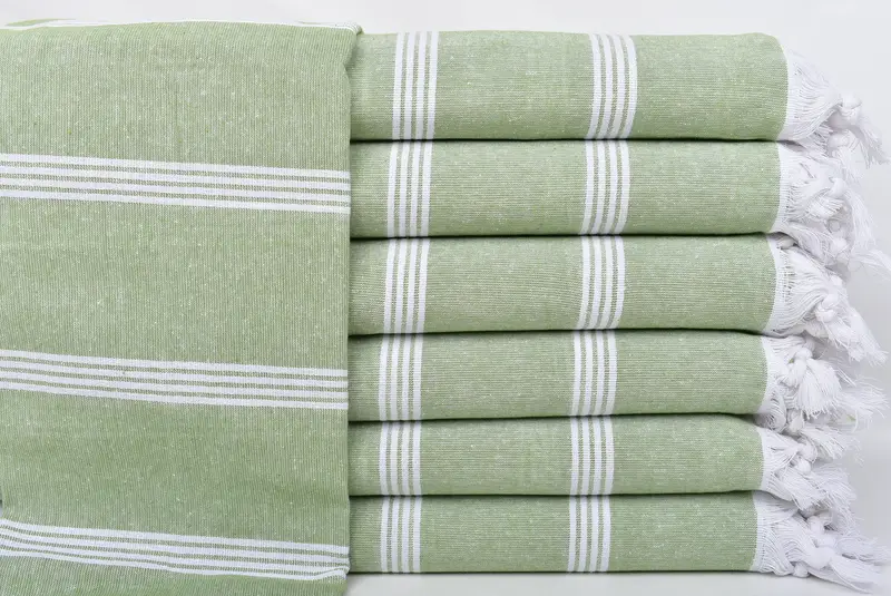 Türk Plaj Havlusu Yeşil Çizgili Peştemal, 30x69 İnç