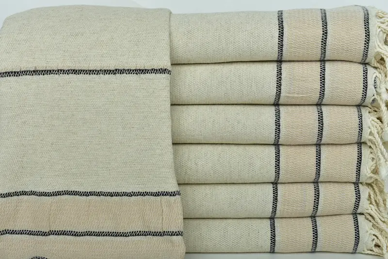 Kişiye Özel Türk Havlusu Açık Bej Çizgili Keten, 36x71 İnç