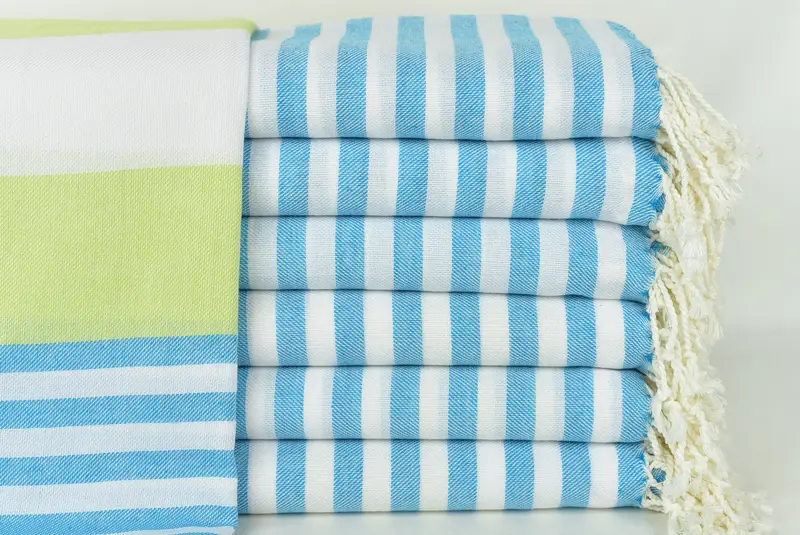 Mavi-Fıstık Yeşili Çizgili Havlu, 40x71 İnç, Türk Pamuğu
