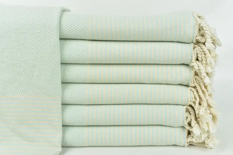 Kişiye Özel Nane Çizgili Plaj Havlusu Monogram, Türk Pamuğu, 36x71 İnç