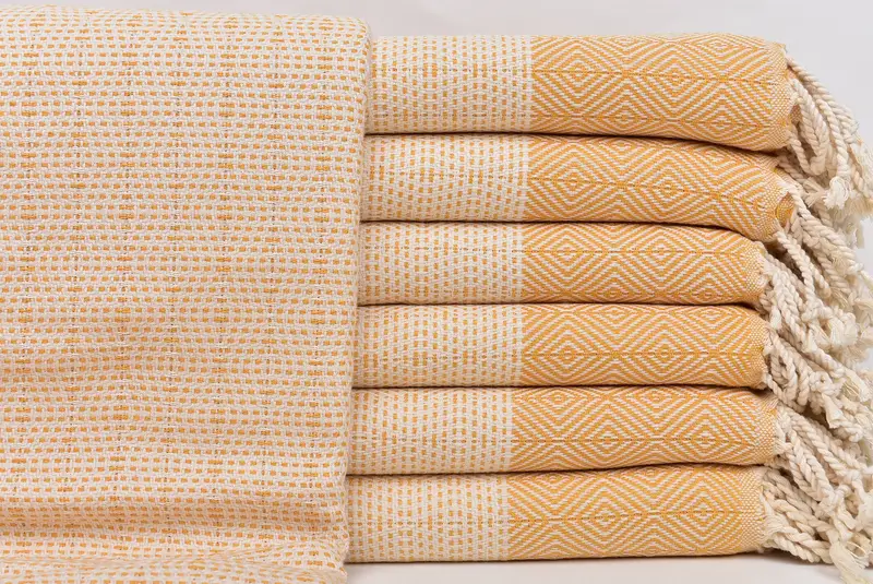 Plaj Havlusu Türk Pamuk Hardal Elmas, 40x71 İnç