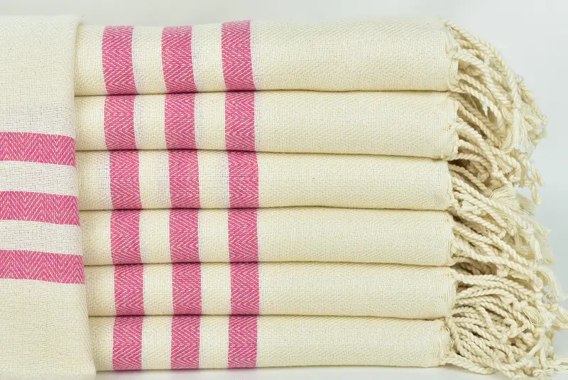 Türk Havlusu Fuşya Çizgili Plaj Banyo Havlusu, 40x71 İnç