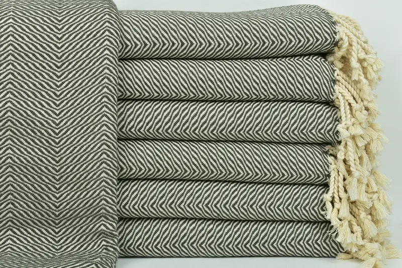 Türk Havlusu Plaj Haki Yeşil Chevron Havlu, 40x71 İnç