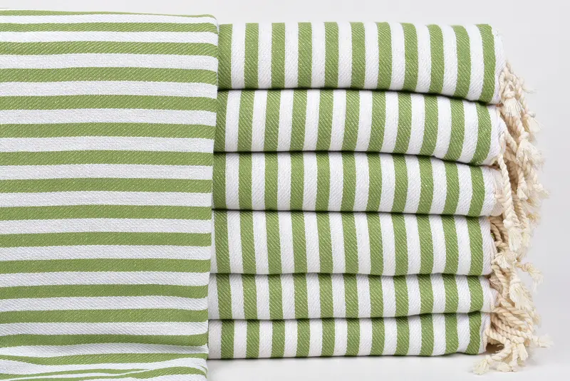 Organik Pamuk Havlu Türk Haki Yeşil Çizgili, 40x71 İnç