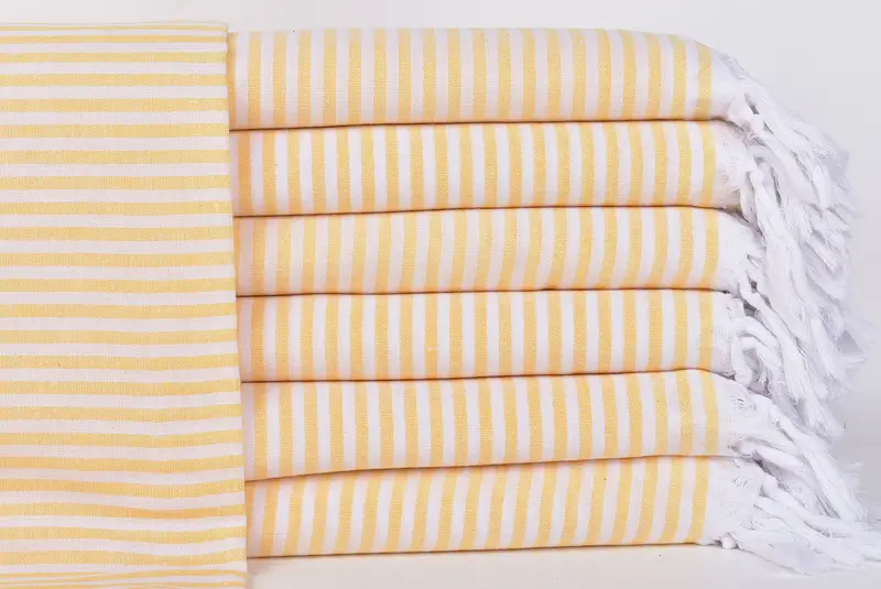 Toptan Sarı Çizgili Peştemal Havlu, 40x63 İnç, Türk Pamuğu