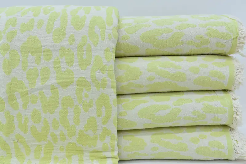Dekoratif Fıstık Yeşili Kamuflaj Battaniye, Organik Pamuk, 78x98