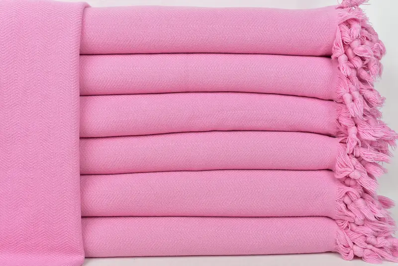 Toptan Pembe Chevron Taşlanmış Battaniye, 69x87 İnç