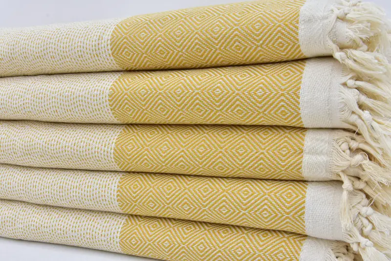 Türk Pamuklu Battaniye Hardal Geometrik Desenli Atma, 79x95 İnç