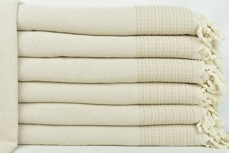 Düğün Hediyesi Battaniye Özel Açık Bej Çizgili Atmak, 91x95 İnç