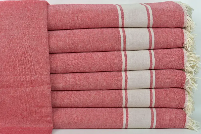 El Dokuma Türk Kırmızı Çizgili Battaniye, 60x71 İnç