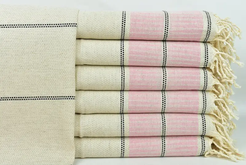 Pamuk Dokuma Çay Havlusu Pembe Çizgili, Mutfak ve Çay Havlusu, Bej, 20x40 İnç