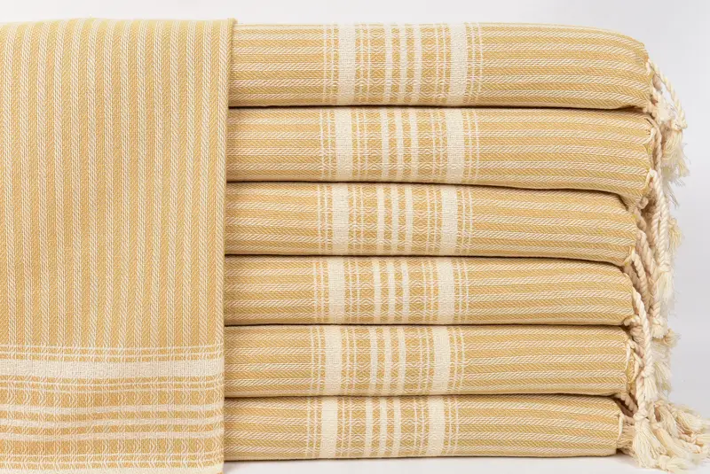 Küçük Mutfak Havlusu Türk Pamuk Bej Çizgili, 18x40 İnç
