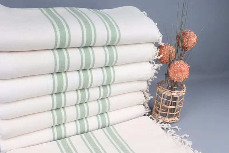 Organik Pamuk Havlu, Kişiye Özel Türk Plaj Havlusu, Haki Yeşil, 40x71 İnç