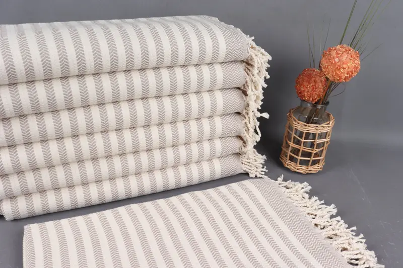 Plaj Havlusu Türk Pamuk Açık Kahverengi Chevron, 40x71 İnç