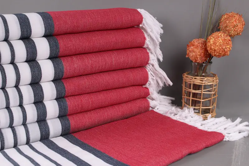 Türk Havlusu Organik Pamuk Kırmızı Çizgili, 40x71 İnç
