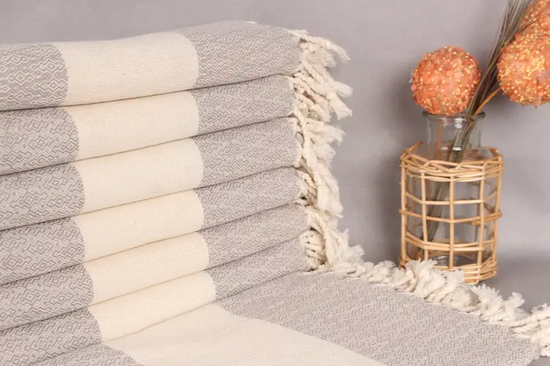 Açık Gri Pamuklu Havlu Türk Plaj Havlusu, 36x67 İnç