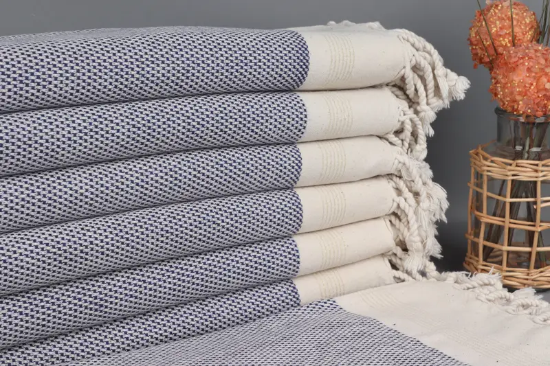 Türk Havlusu Plaj Özel Lacivert Çizgili Pareo, Organik Pamuk, 40x71 İnç