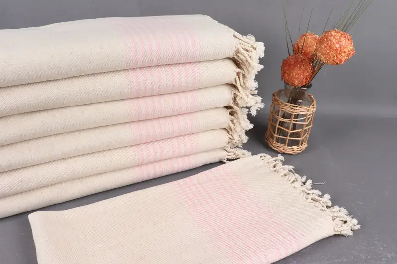 Kişiye Özel Pembe Peştemal Banyo Havlusu, Çizgili, 40x79 İnç Keten