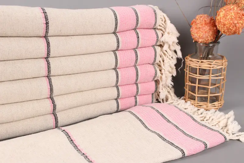Kişiye Özel Pembe Çizgili Keten Havlu, 36x71 İnç, Organik Pamuk