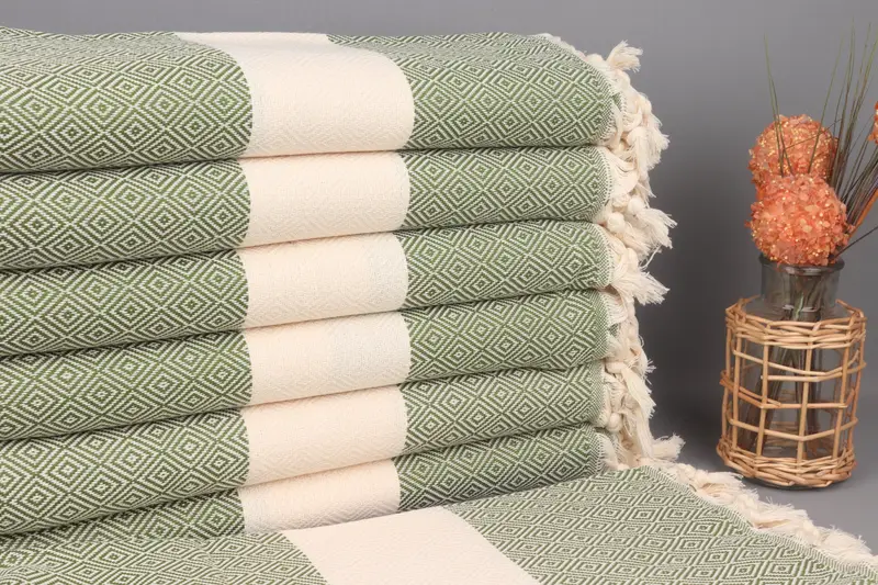 Türk Havlusu Zeytin Yeşili Elmas, Organik Pamuk, 40x71 İnç
