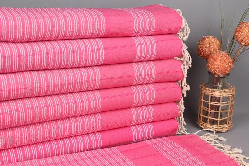 Kişiye Özel Türk Plaj Havlusu Fuşya Çizgili, 38x71 İnç