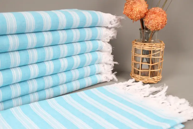 Türk Plaj Havlusu Kişiye Özel Turkuaz Çizgili, 40x71 İnç