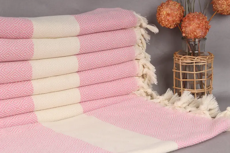 Kişiye Özel Plaj Havlusu Açık Pembe Elmas, Organik Pamuk, 40x71 İnç