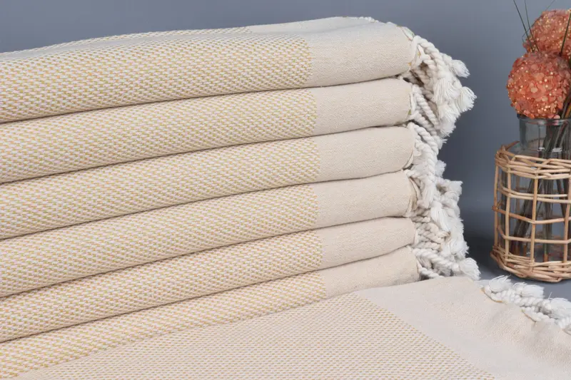 Özel Hardal Geometrik Havlu Nedime Hediyesi, Organik Pamuk, 40x71 İnç
