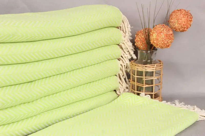 Kişiye Özel Fıstık Yeşili Chevron Havlu, Organik Pamuk, 40x71 İnç