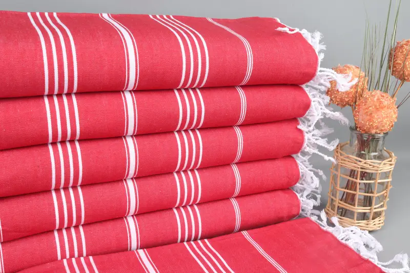 Türk Plaj Havlusu Organik Pamuk Kırmızı Çizgili, 38x73 İnç