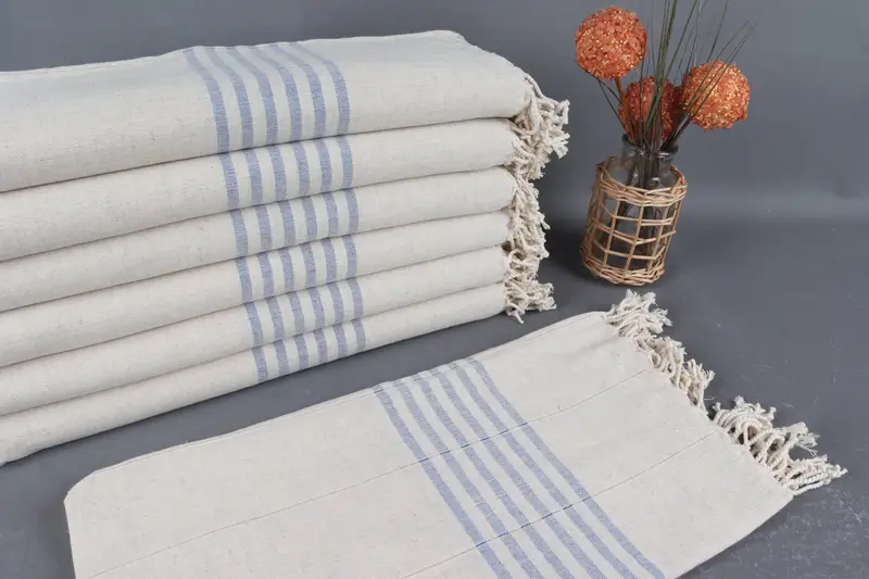Türk Plaj Havlusu Organik Pamuk Saks Mavi Çizgili, 40x71 İnç
