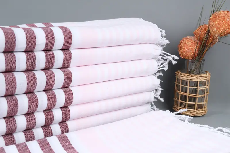 Kişiye Özel Hediye Kutusu Havlu, Türk Pamuğu, Pudra-Bordo, 36x67 İnç